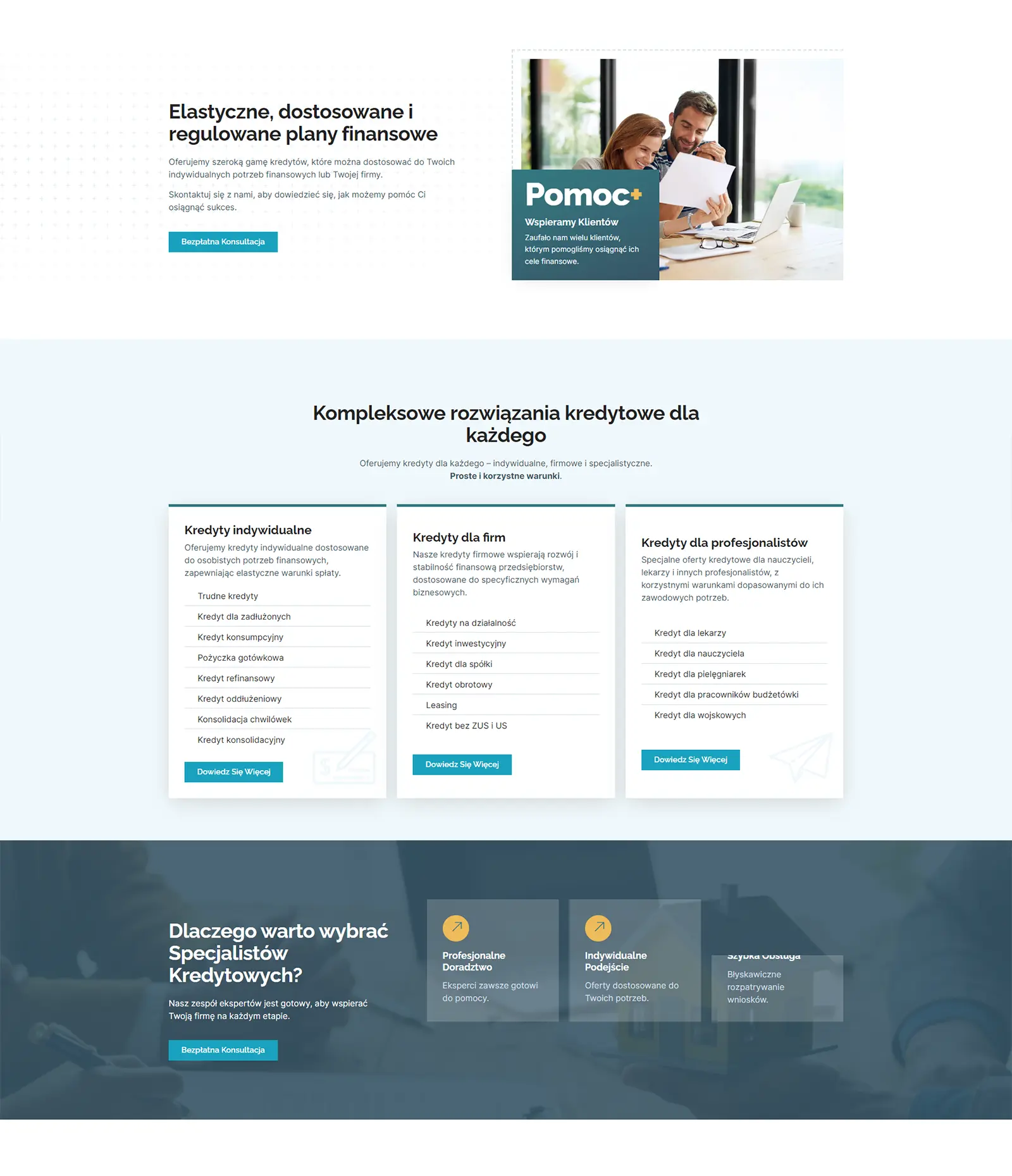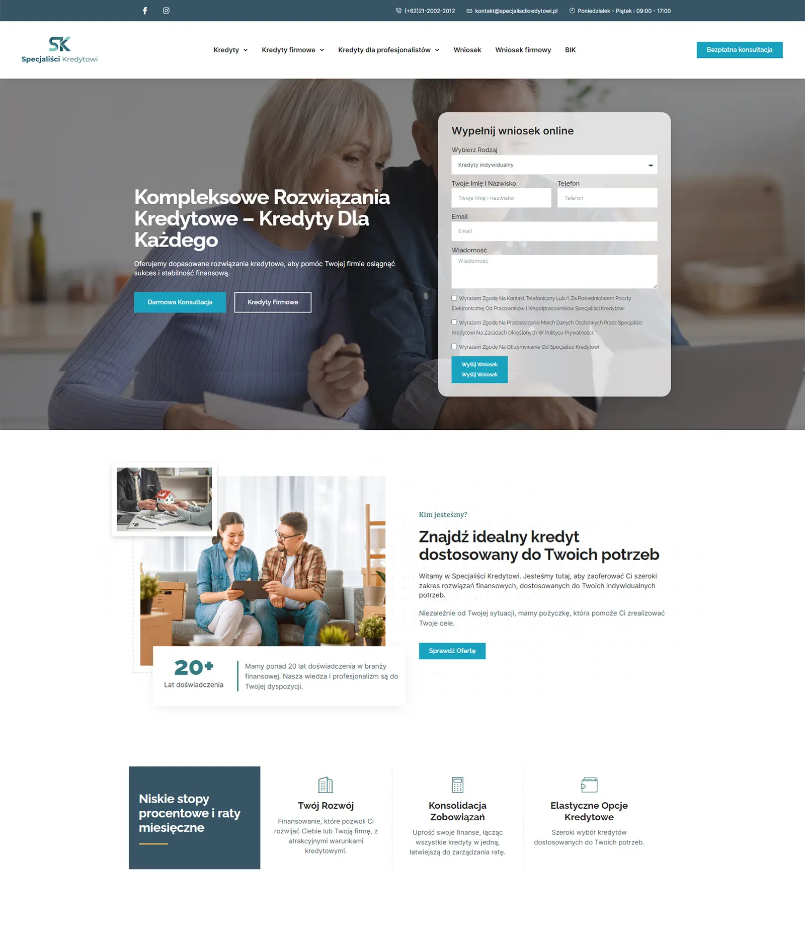 Stworzyliśmy kompleksową stronę internetową dla „Specjaliści Kredytowi", specjalizującą się w oferowaniu kompleksowych rozwiązań kredytowych dla różnych klientów. Opracowaliśmy nowoczesny i intuicyjny wygląd strony, zadbaliśmy o profesjonalne i przejrzyste treści, a także optymalizację SEO, aby zwiększyć widoczność strony w wynikach wyszukiwania Google. Nasze podejście pozwala na skuteczne przyciąganie nowych klientów oraz budowanie silnej marki w branży.